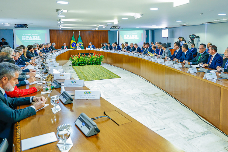 O presidente Lula reuniu-se nesta quinta-feira, 31 de outubro, no Palácio do Planalto, com governadores, vice-governadores, ministros e representantes do poder judiciário e do poder legislativo, de prefeituras e municípios, além da Polícia Federal e Polícia Rodoviária Federal, para discutir a questão da Segurança Pública no Brasil.