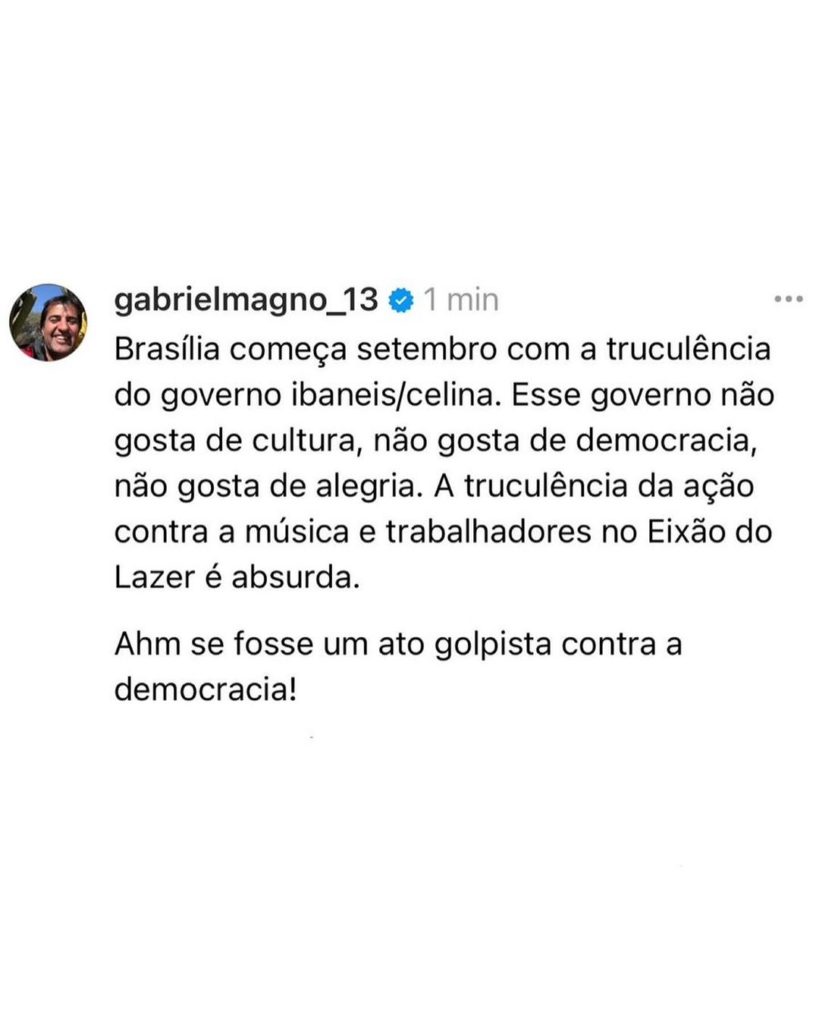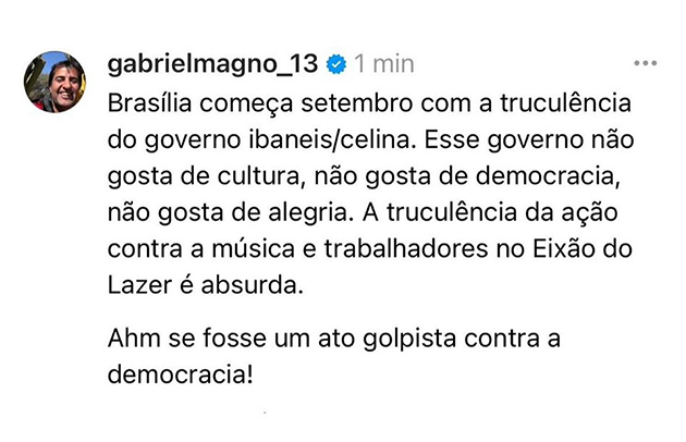 Ação truculenta do governo Ibaneis/Celina acabando com nosso Eixão do Lazer, mandando todo mundo pra casa! Esse governo não gosta de jazz, choro, samba, não gosta de arte, de alegria, e nem de deixar os ambulantes ganharem sua subsistência prestando um bom serviço à população.