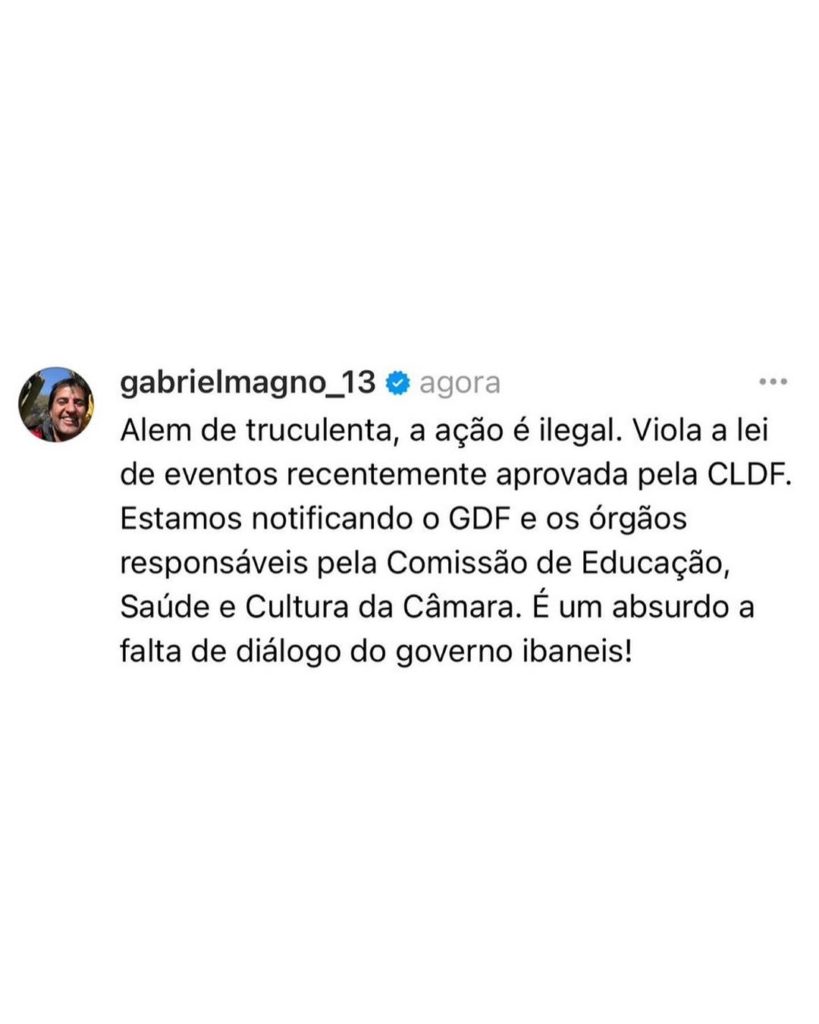 Estamos notificando, pela Comissão de Educação, Saúde e Cultura, o GDF e os órgãos responsáveis. É um absurdo a falta de diálogo do governo Ibaneis!