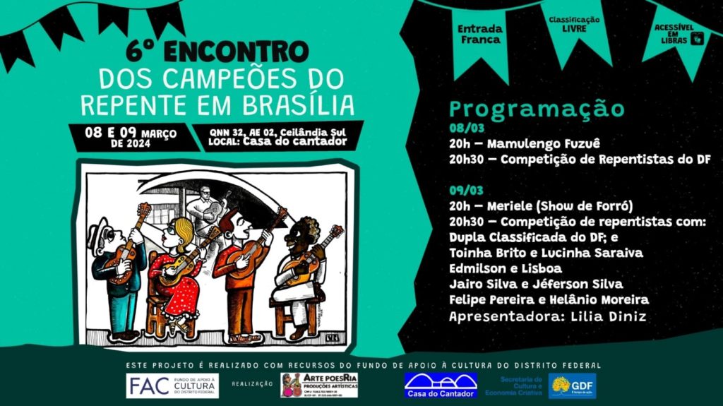 20h30 – Competição das duplas de repentistas do DF: