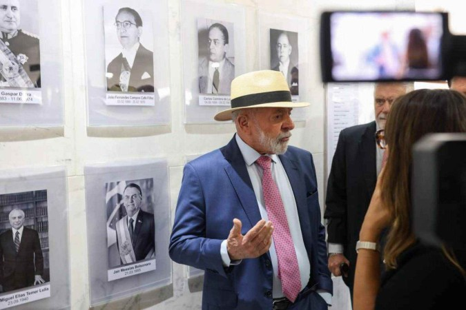 O presidente Luiz Inácio Lula da Silva visitou, nesta quinta-feira (9/1), a galeria dos presidentes, no Palácio do Planalto. Na ocasião, o petista pediu ao curador que as fotos possuam mais informações históricas e criticou o governo do adversário, Jair Bolsonaro.