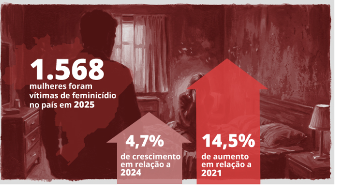 Os números assustam. Segundo dados do Fórum Brasileiro de Segurança Pública, o Brasil registrou 1.568 feminicídios em 2025 — alta de 4,7% em relação a 2024 e de 14,5% desde 2021. Desde a promulgação da Lei do Feminicídio, em 2015, já são 13.703 mulheres assassinadas pelo simples fato de serem mulheres. A maioria das vítimas é negra, com cerca de 36 anos, mortas dentro de casa pelo parceiro ou ex-parceiro íntimo.