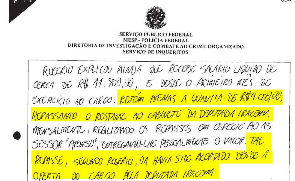 O caso veio à tona durante busca e apreensão na casa de Ciro no âmbito da Operação Metanoia, desdobramento da Lava Jato. No local, a PF encontrou envelope com a inscrição ‘entregar nas mãos Dep.’, mais R$ 8,2 mil em dinheiro e dois contracheques de Rogério.