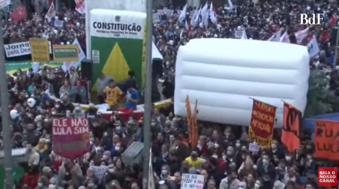 Movimentos sindicais, como o CSP-Conlutas protestaram também com faixas com dizeres “golpe não” e “tomar as ruas para defender as liberdades democráticas”.