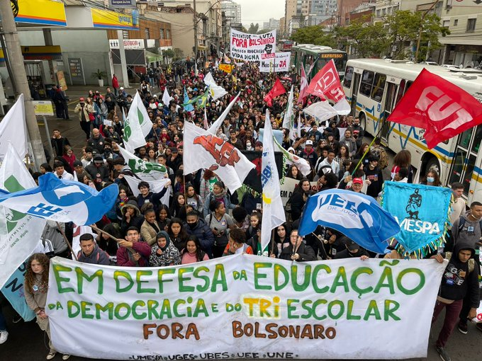 O protesto foi acompanhando também por universitários e trabalhadores que engrossaram o coro “a nossa luta é todo dia, educação não é mercadoria” e “fora Bolsonaro” durante a passeata.