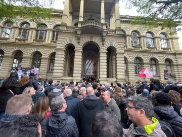 Milhares de manifestantes lotaram a frente da UFRGS.