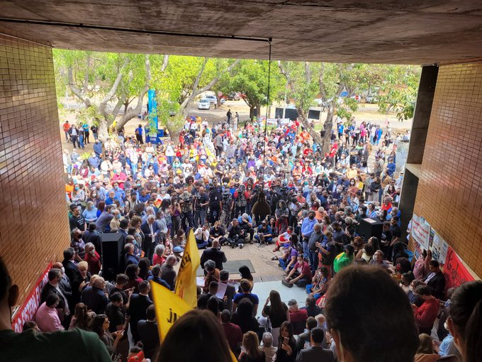 Em Brasília (DF), os estudantes estão na UnB em manifestação também para a leitura da Carta em Defesa do Estado de Direito. BOLSONARO SAI DEMOCRACIA FICA
