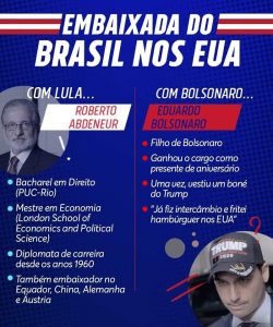 Eduardo Bolsonaro não tem nenhuma capacidade de ser embaixador brasileiro. Em qualquer lugar do mundo, mas especialmente nos EUA. Não somente porque não tem formação e conhecimento suficiente, mas principalmente por acreditar que “fritar hamburgueres nas montanhas do Colorado” seja, de alguma forma algo positivo para a pretensão do cargo. Bolsonaro não sabe absolutamente nada sobre os EUA e já se tornou fervoroso apoiador de Trump, um erro que o Brasil pode pagar caro, caso os democratas venham a vencer o pleito de 2020.