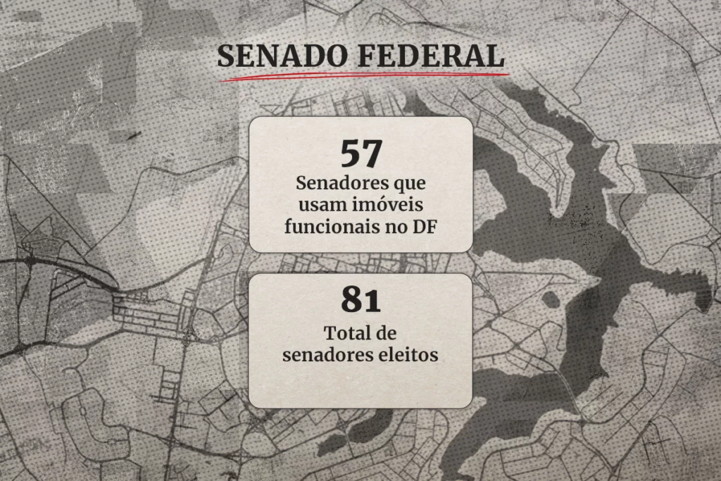 Segundo relatório do Senado Federal atualizado neste mês de janeiro, 57 senadores utilizam imóveis funcionais no DF. Eles podem optar pelo uso dos apartamentos ou pelo recebimento de um auxílio-moradia de R$ 5,5 mil mensais com a finalidade de cobrir despesas com aluguel ou diária de hotel.