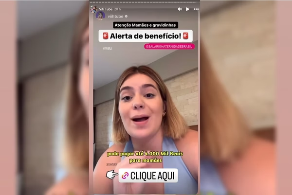“Atenção mamães e gravidinhas que me acompanham, tenho uma super dica para vocês. Vocês sabiam que podem ganhar até R$ 4 mil de auxílio-maternidade? Entre neste link que a Serra Ribeiro Assessoria vai cuidar de tudo para vocês. Eles já liberaram milhares de benefícios de uma forma prática, segura e rápida para muitas mamães e gravidinhas. Vale muito a pena”, afirma Viih Tube em um dos vídeos divulgados no perfil da Serra Ribeira.