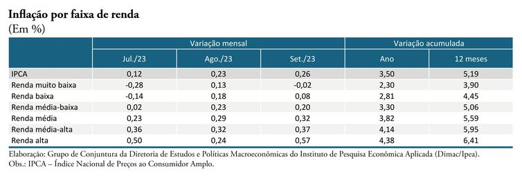 Enquanto o Índice Nacional de Preços ao Consumidor Amplo (IPCA), calculado pelo Instituto Brasileiro de Geografia e Estatística (IBGE), ficou em 5,19%, a inflação para as famílias com renda muito baixa foi de 3,9%. Já para as de renda baixa, 4,45%.