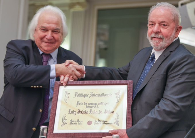 247 – O ex-presidente Luiz Inácio Lula da Silva recebeu nesta quarta-feira (18), em Paris, o prêmio “Coragem Política” conferido pela Recebendo o prêmio Coragem Política, da revista Politique Internationale.