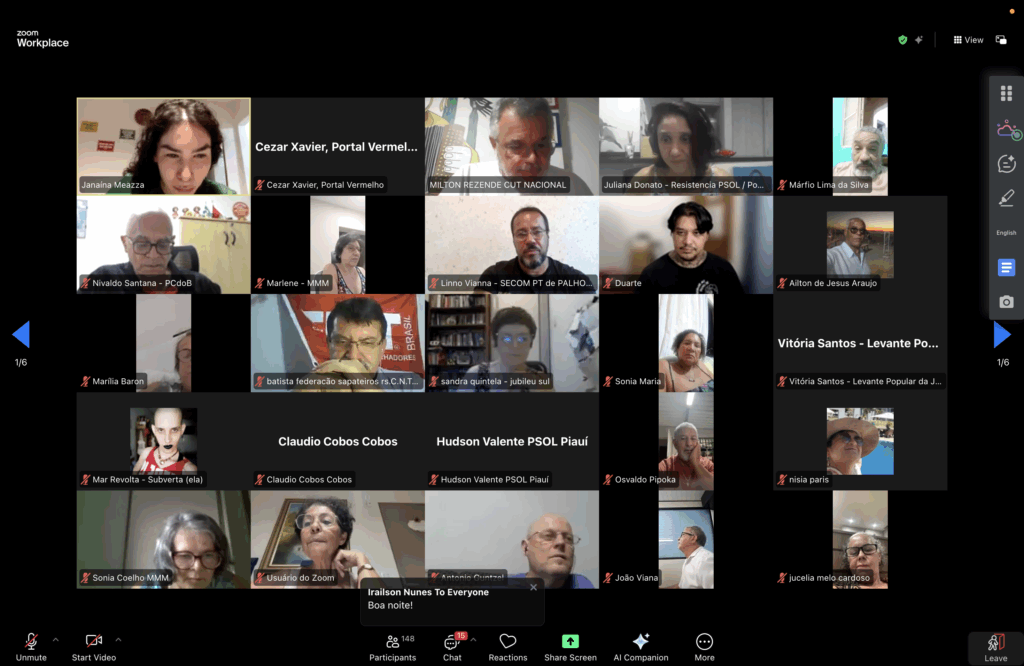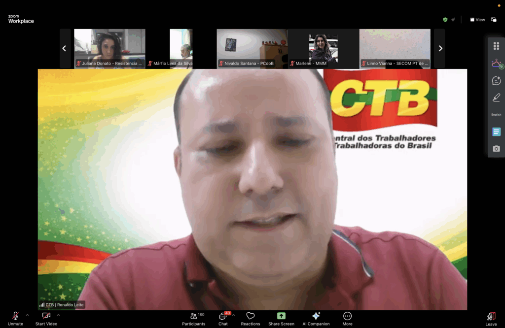Mais de 200 representantes de centrais sindicais, movimentos sociais, populares e partidos de esquerda participaram, nesta terça-feira (17), de plenária virtual que teve como objetivo central alinhar a articulação política nacional em torno da campanha pelo fim da escala 6×1 e pela redução da jornada de trabalho sem redução salarial, definindo calendário unitário de mobilizações e estratégias de pressão sobre o Congresso Nacional. A principal mobilização será a Marcha da classe trabalhadora pelo fim da escala 6 x 1, no dia 15 de abril, em Brasília.