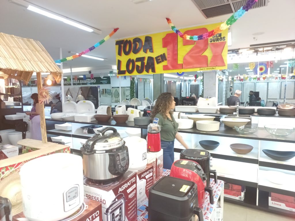 “Nós teremos, e já está acontecendo, ofertas do arraial. Tem vários produtos do básico ao acabamento, temos porcelanato, produtos para pintura, eletrodomésticos, tem tudo, todas as variedades da loja estão com promoções”, diz a gerente de vendas da Campeão da Construção, Sônia Coelho.