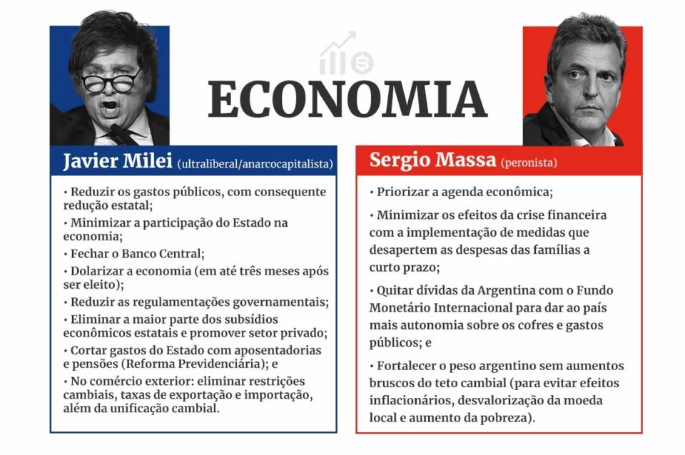 Os argentinos deverão escolher entre Sergio Massa e Javier Milei, em uma eleição pautada pelos problemas da economia do país hermano
