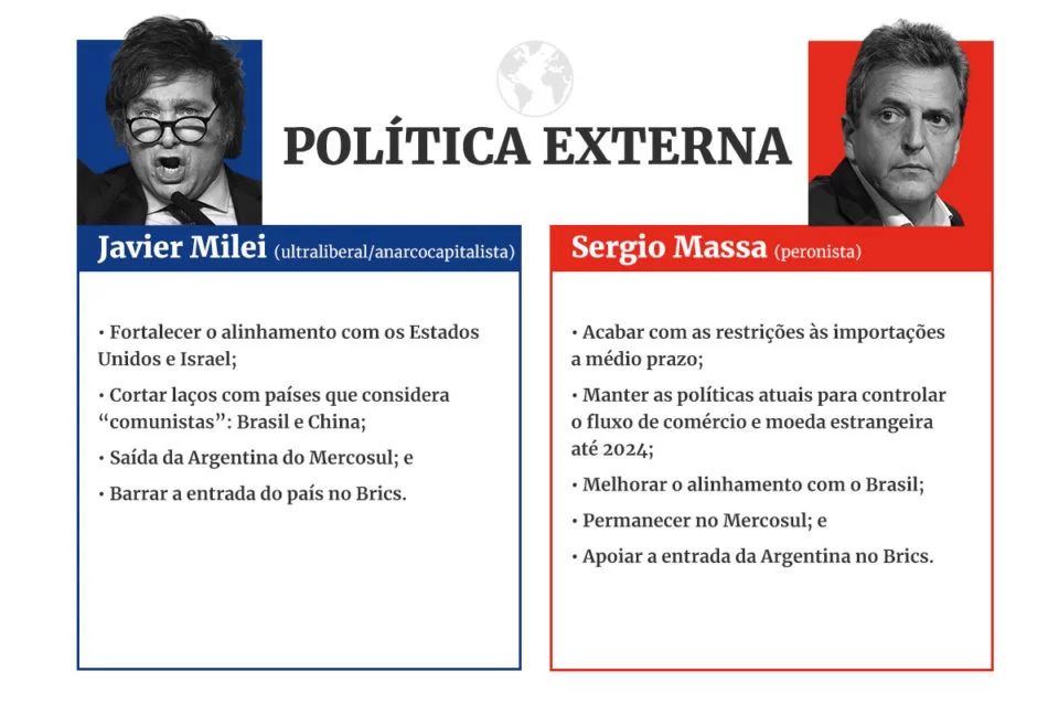 A decisão dos argentinos, como explica Flavia Loss, professora de Relações Internacionais da Fundação Escola de Sociologia e Política de São Paulo (FESPSP) e pesquisadora do Observatório de Regionalismo (ODR), é entre um modelo político conhecido, representado por Massa, ou a ruptura dos moldes tradicionais, com a proposta de Milei.
