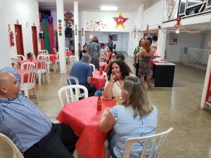 A decoração natalina foi um show a parte, realizada pela Regina e a Rosana, deixou a confraternização ainda mais alegre e animada. Teve muito bate papo, descontração, reencontro de velhos e novos companheiros (as). Também o Dep. Chico celebrou este momento e passou a sua mensagem especial de final de ano. Só lembrando que esta confraternização já é realizada há mais de 20 anos pelo PT-CEILANDIA!