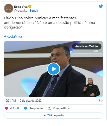 Em entrevista ao programa Roda Viva, da TV Cultura, na noite desta segunda-feira (19), ele fez alusão ao caso para afirmar que irá prosseguir – ou iniciar – investigações contra golpistas apoiadores de Jair Bolsonaro que estão há várias semanas nas frentes de quartéis e promoveram uma arruaça em Brasília no dia da diplomação de Lula.