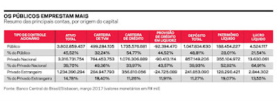 A participação da Caixa, do BB, do Banco do Nordeste, do Banco da Amazônia e do BNDES está na contramão de outras instituições públicas, segundo ele. Os bancos estaduais tiveram sua participação esvaziada nas últimas duas décadas, com a privatização das principais instituições durante o Plano Real.