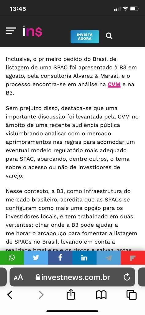 A segunda peça ajuda a decifrar o jogo. A Alvarez & Marsal ingressou na B3 com o primeiro pedido de listagem de uma SPAC – uma Sociedade de Propósito Específico. No caso, especificamente para captar dinheiro para adquirir outras empresas. O pedido está em análise na Comissão de Valores Mobiliários (CVM).