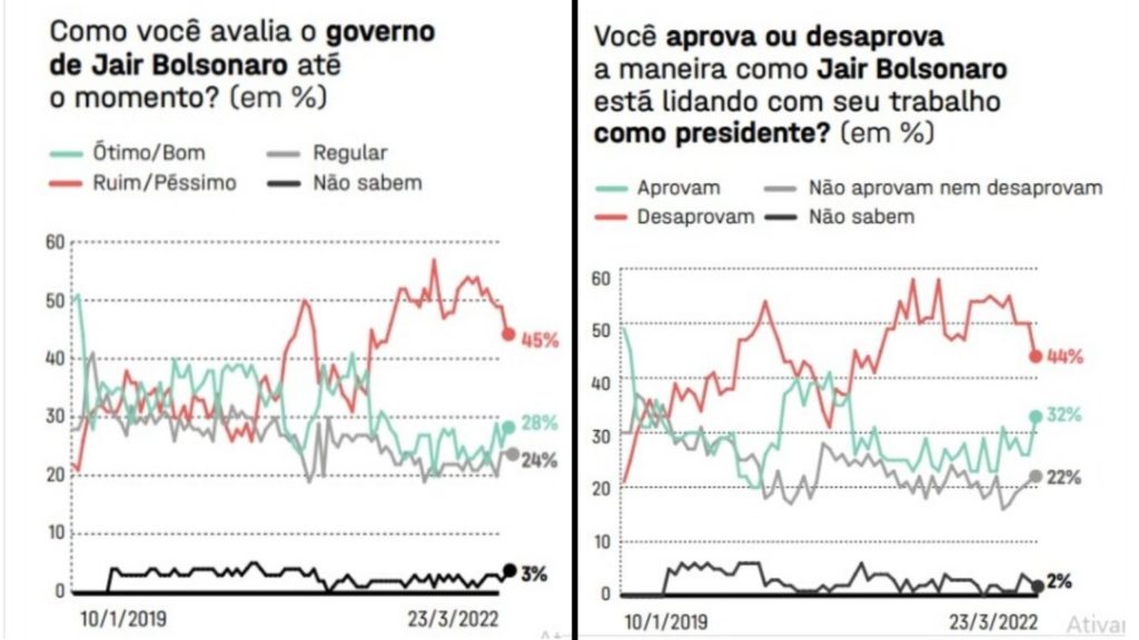 58% creem que o mandatário da República “não merece ser reeleito”. Apesar dos números bastante complicados, seu desempenho melhorou em relação a levantamentos realizados anteriormente. Segundo Maurício Moura, fundador do Ideia, há uma “reacomodação de bolsonaristas ou de pessoas mais favoráveis ao presidente neste momento”.
