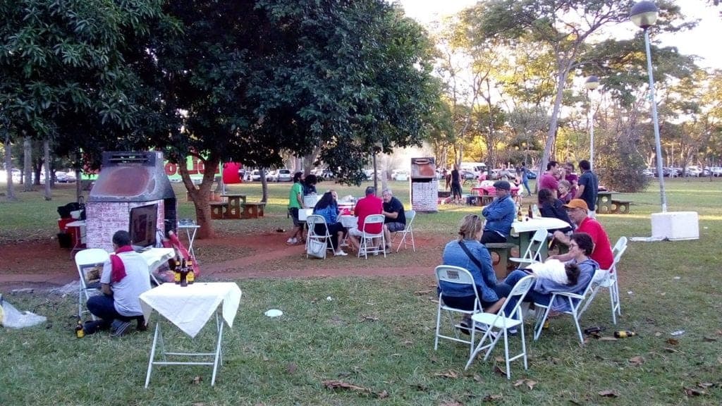 A atividade foi realizada em local aberto, no parque da cidade, um grande espaço público de Brasília onde, no final de semana, transitam milhares de pessoas. A comissão organizadora trabalhou pensando cuidadosamente em todos os detalhes para que a atividade fosse bem organizada e assim aconteceu, com todos os presentes elogiando a organização, a boa comida, a cervejinha gelada, os refrigerantes e a boa carne.