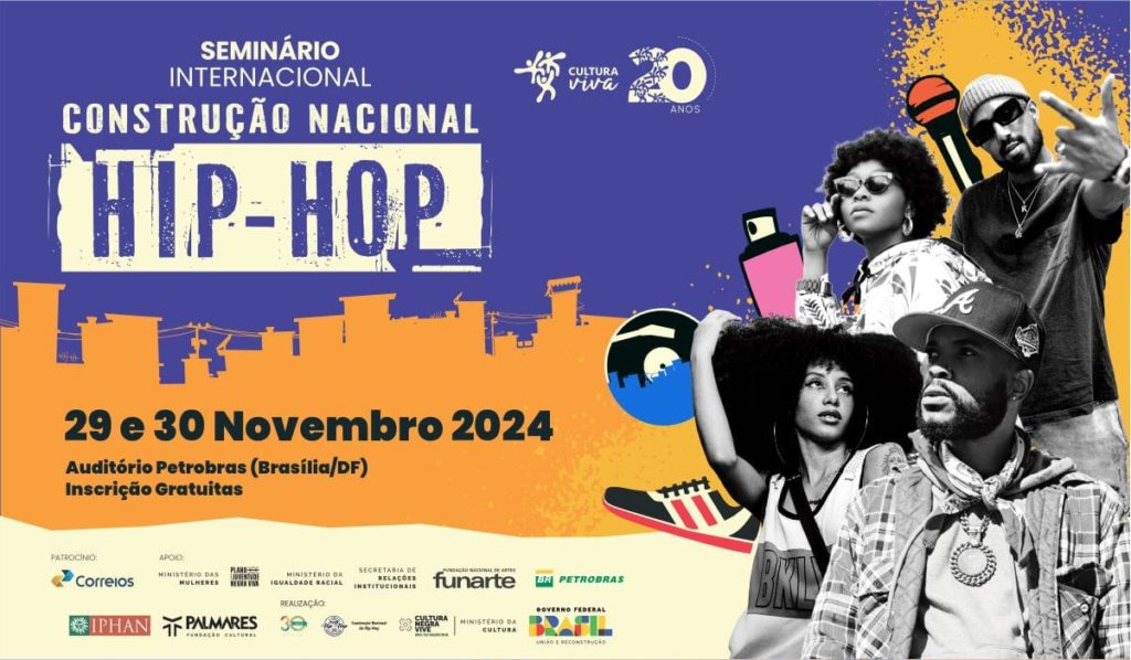 Realizado pelo Ministério da Cultura (MinC), por meio da Secretaria de Cidadania e Diversidade Cultural; do movimento Construção Nacional da Cultura Hip-Hop e da Universidade Federal de São Paulo (Unifesp), com patrocínio dos Correios, o I Seminário Internacional Construção Nacional da Cultura Hip-Hop conta com o apoio do Ministério da Igualdade Racial, da Secretaria de Relações Institucionais, da Fundação Nacional de Artes (Funarte), do Instituto do Patrimônio Histórico e Artístico Nacional (Iphan), da Fundação Cultural Palmares e da Petrobras, e surge como um espaço privilegiado para debater a centralidade desse movimento no cenário brasileiro e seu papel crucial na construção de identidades culturais.