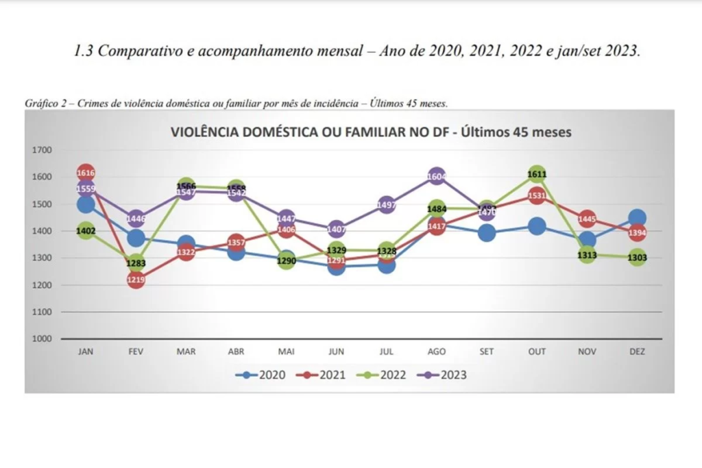 Em números absolutos, Ceilândia teve mais casos de violência doméstica em 2023, com 1.728, mas o maior crescimento destes crimes ocorreu no Jardim Botânico, com aumento de 42% em relação ao ano passado.
