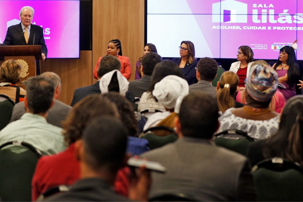 O ministro da Justiça e Segurança Pública, Ricardo Lewandowski, e a ministra das Mulheres, Cida Gonçalves, assinaram a portaria do Programa Nacional das Salas Lilás. Os dois lançaram os cadernos temáticos de referência do Protocolo Nacional de Investigação e Perícias nos Crimes de Feminicídio, de Padronização Nacional das Patrulhas Maria da Penha e de Padronização Nacional das Delegacias Especializadas de Atendimento à Mulher (Deams).