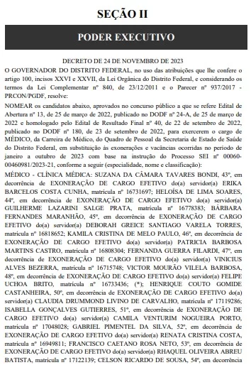 Publicação com o nome dos aprovados consta no Diário Oficial do Distrito Federal (DODF) desta 2ª feira (27/11)