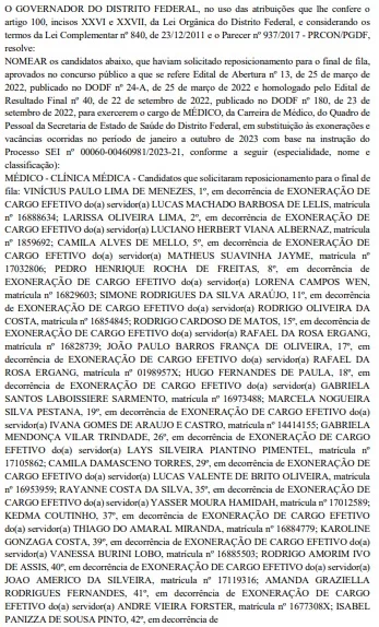 Na mesma publicação, o chefe do Executivo local nomeou, ainda, os candidatos aprovados no mesmo certame que haviam pedido reposicionamento para o fim da fila.