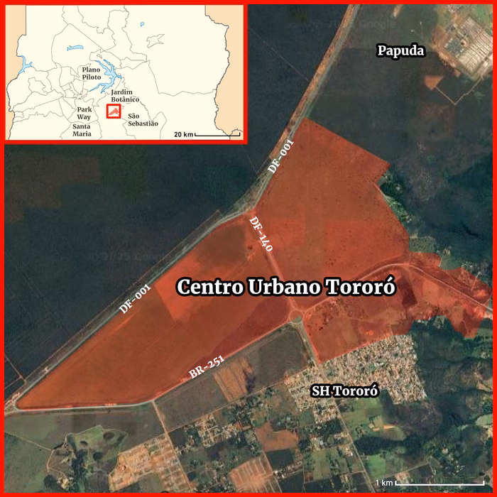 O Centro Urbano Tororó ficará próximo ao entroncamento da DF-001 com a DF-140, distante 11 quilômetros da cabeceira da terceira ponte do Lago Sul e 17 km da Esplanada dos Ministérios. O espaço, de cerca de 785 hectares, será destinado não somente a moradia, mas também a comércio, serviços, instituições e equipamentos públicos.Play Video