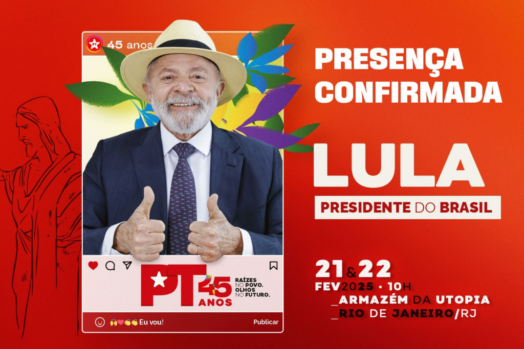 O presidente Luiz Inácio Lula da Silva vai participar, presencialmente, da comemoração do aniversário de 45 anos do PT, que ocorrerá no Armazém da Utopia, no Rio de Janeiro, nos dias 21 e 22 de fevereiro.