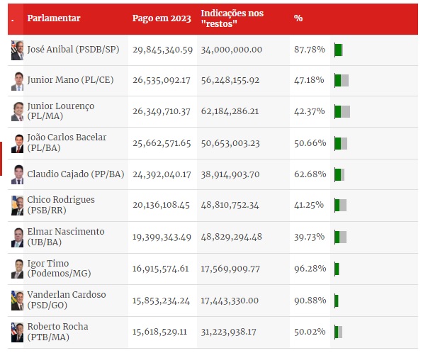 Parlamentares que mais receberam pagamentos em 2023
