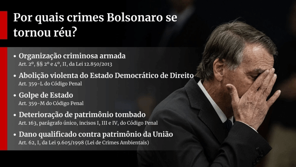 Crimes imputados contra Bolsonaro e demais réus: